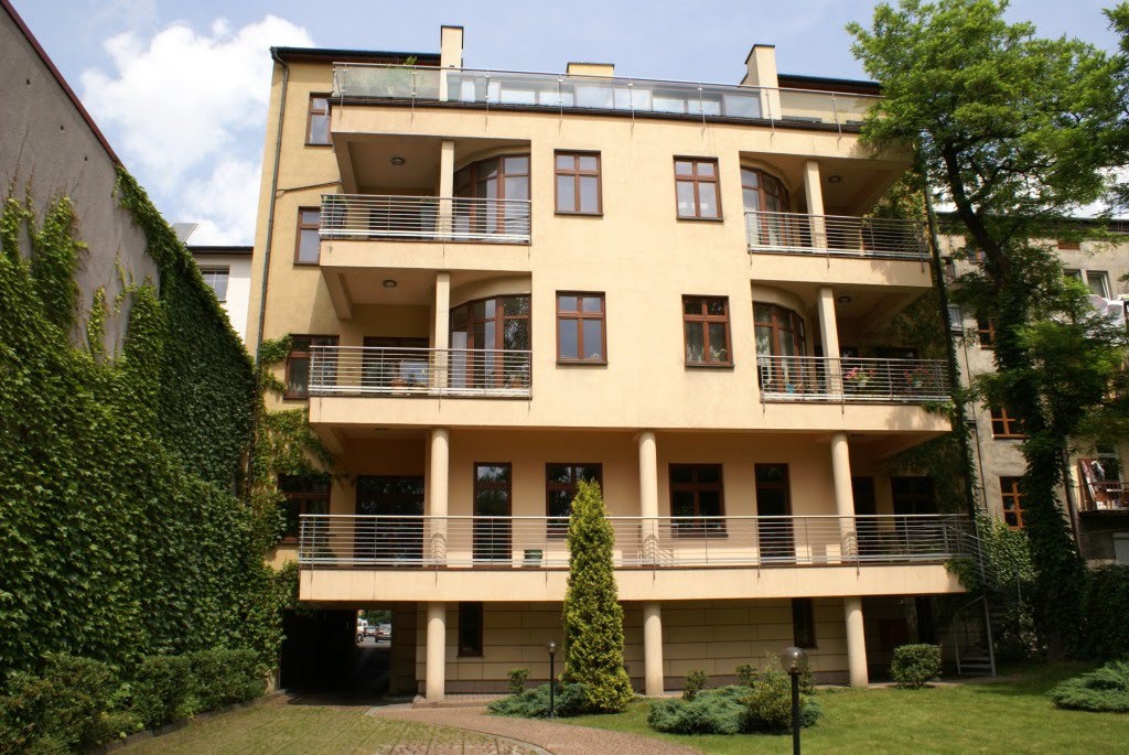 There are only 7 apartments in the building (2 apartments per level), garden at the back of the building and parking spaces. As it is converted from the old building the first impression you can notice is that there is high celling (around 3.3 m and today's standard is around 2,7 m high).